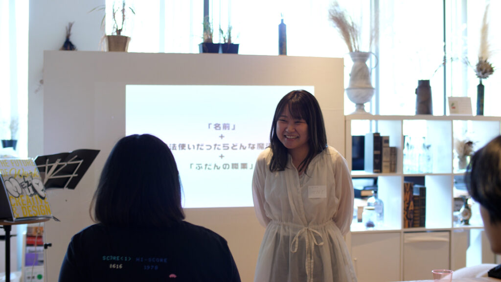 「もし、自分が魔法使いだとしたら、どんな魔法使いか」というお題のもと、名前と職業と「自分が使える魔法」をセットで紹介するユニークなスタイルの自己紹介でした。